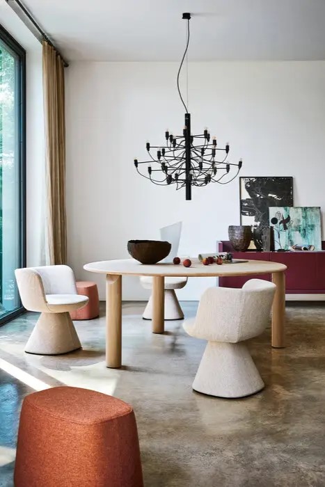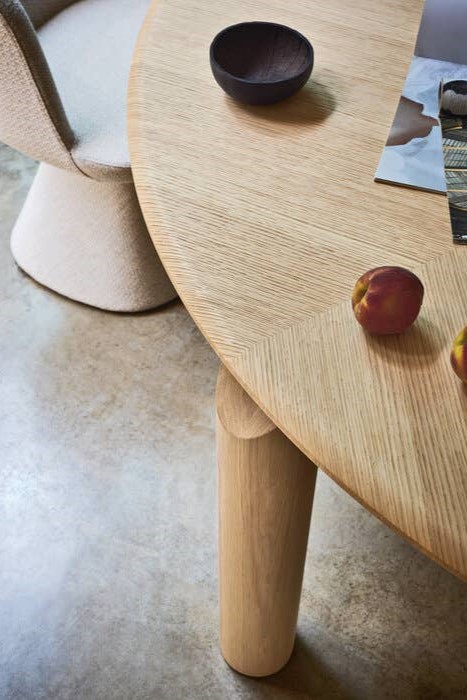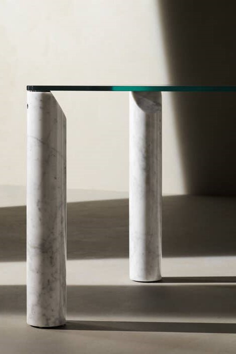 The Isos table was born under the banner of transparency and visual lightness. What characterizes it are the cylindrical legs, load-bearing elements that enjoy an elegant design detail: chisel-tipped, they are grafted to the top by means of a steel plate that lends solidity and style.