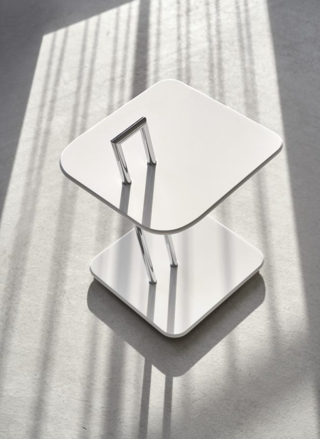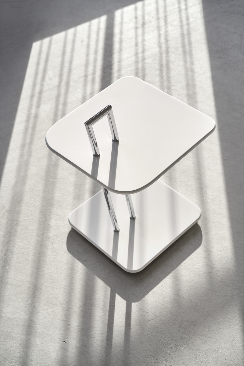 Eileen Gray loved light, functional furniture that could be moved around easily. One can lift this table “for all occasions” as if it had a handle and carry it exactly to where one needs it. Like the Adjustable Table E 1027, it is constructed with a base that slides under the bedside or armchair. Thus breakfast or bedtime reading is within comfortable reach.