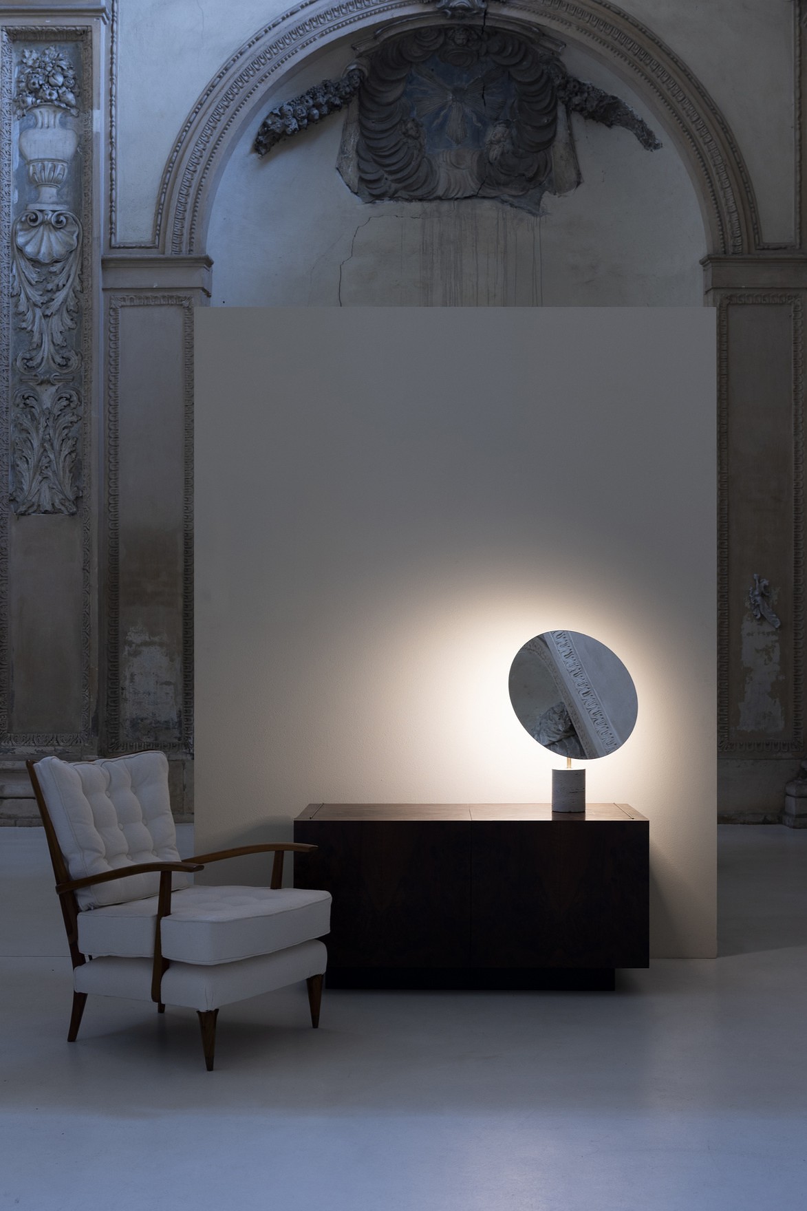 The weight of stone meets the lightness of light and mirror in delicate balance – where solids and voids, shadow and reflection, create a timeless, minimal gesture.