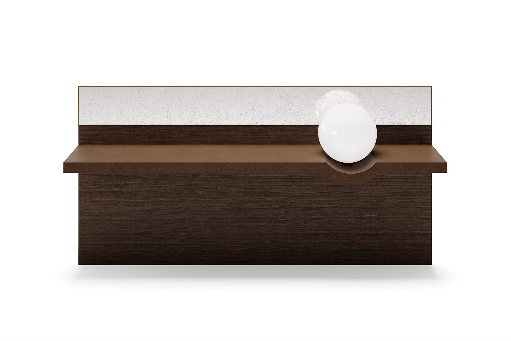 Available finishes: Wood frame available in various wood finishes. Wooden shelf covered by fard leather as per samples.