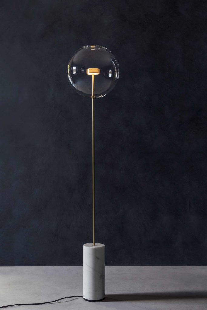 Available finishes: Hand blown transparent borosilicate glass, Italian marble hand finished or electroplated brass and marble.