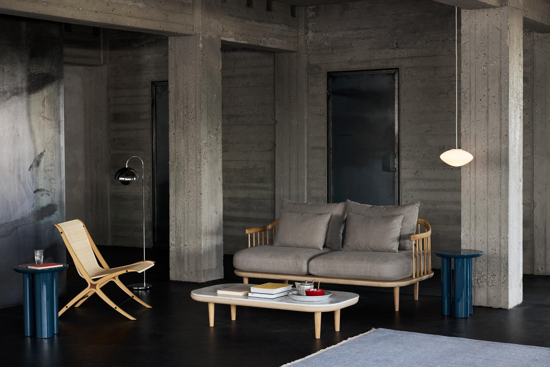 The Fly series by Space Copenhagen is a lounge collection made up of two sofas, an armchair, two tables and a pouf. Pushing the idea of lounging to its fullest, Fly is a series that allows the user to sit, lie, rest, and relax.