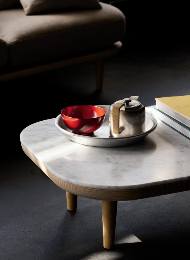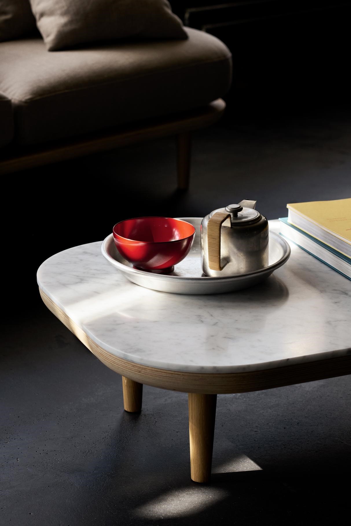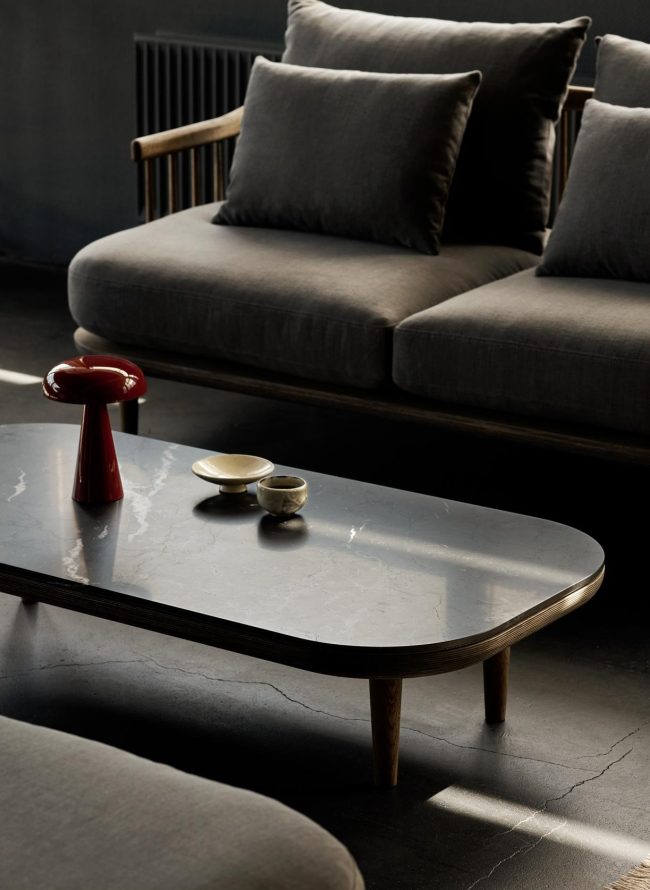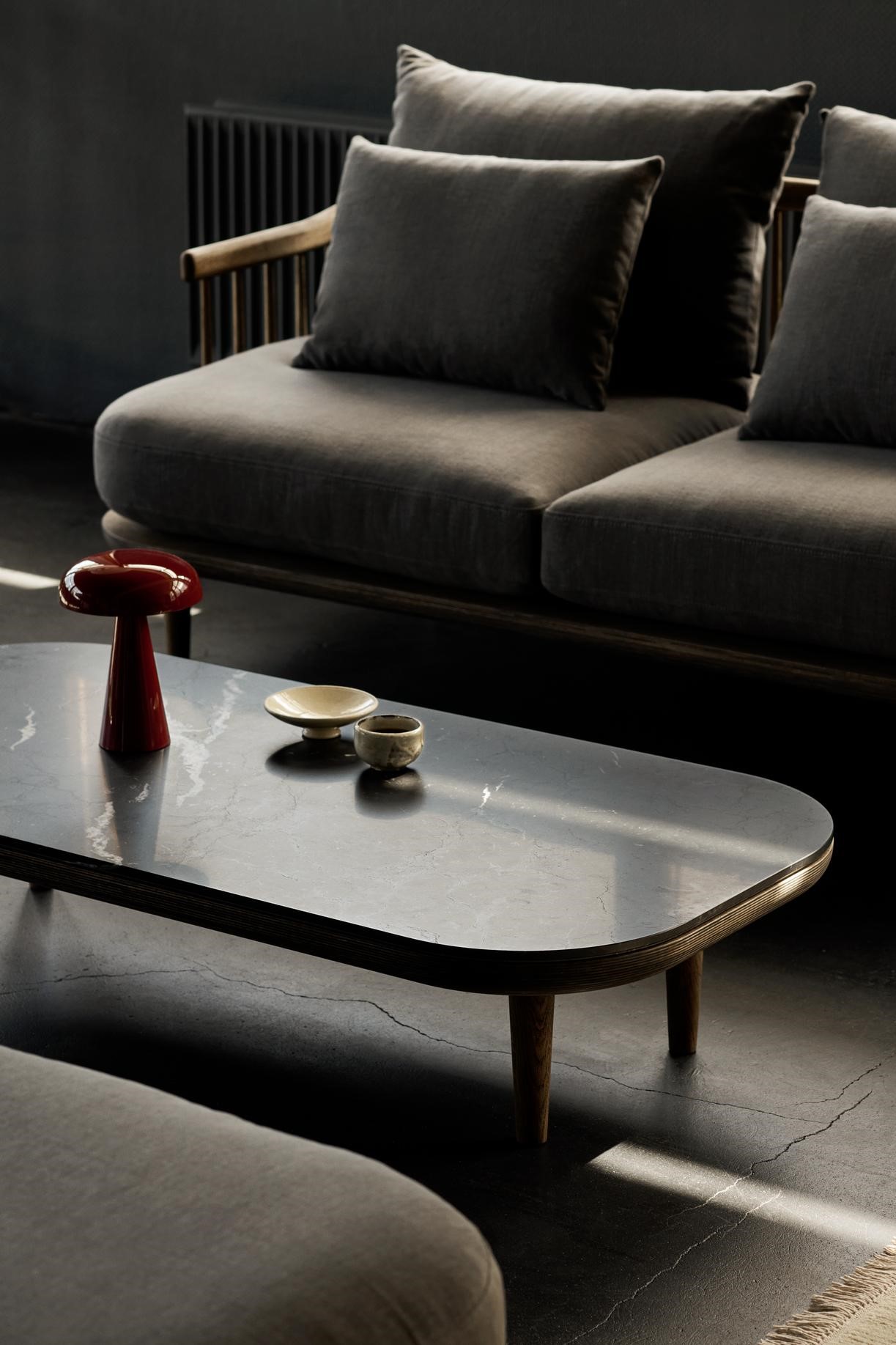 The Fly series by Space Copenhagen is a lounge collection made up of two sofas, an armchair, two tables and a pouf. Pushing the idea of lounging to its fullest, Fly is a series that allows the user to sit, lie, rest, and relax.