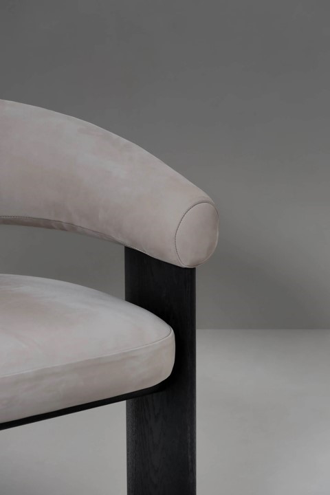 Pieter Maes’s sculptural BRACCI dining chair, the Belgian designer’s first piece for Van Rossum, was designed to express the notion of an embrace with its delicately curved backrest where the leather naturally gathers at the centre.
